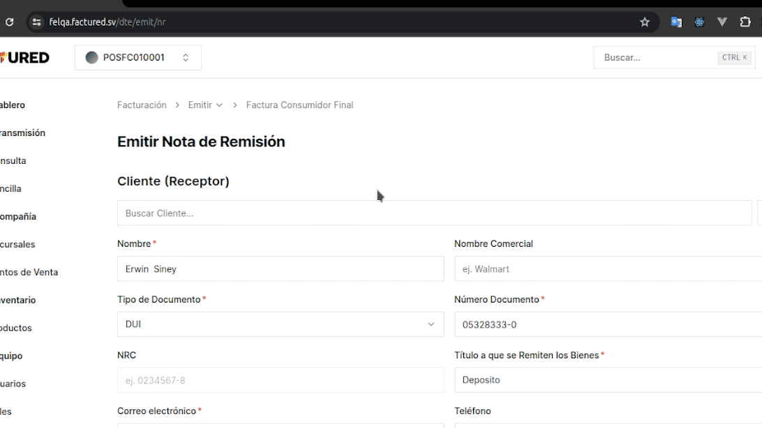 • Datos del Receptor: Información del cliente o entidad receptora (nombre, dirección, NIT, etc.).