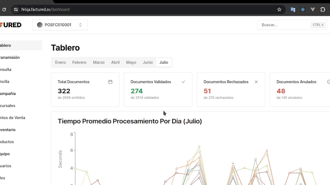La plataforma actualizará el estado de la transmisión (pendiente, aceptado, rechazado, etc.) en tiempo real. Puede revisar el estado de sus transmisiones en la sección “Consulta de DTE”.